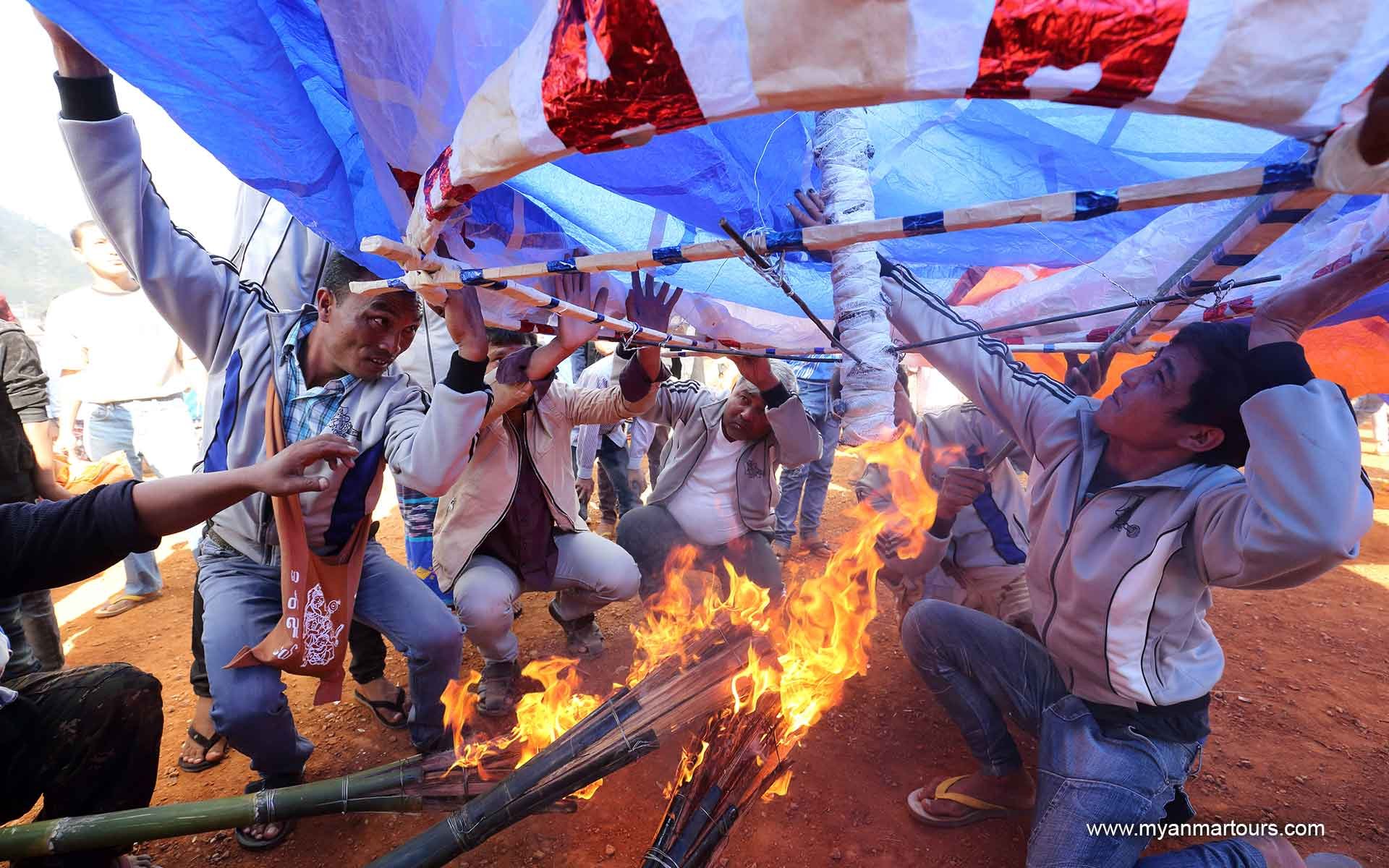 Taunggyi Tazaungdaing festival is an explosive combination of music, hot air balloons and light. In the main area, the teams in competition will in turn drop the hot air balloons that have been prepared carefully in the night sky. Cheering, drumming, and singing, dancing cheer when each team appears. Myanmar's flag is also raised for the patriotism of the people.