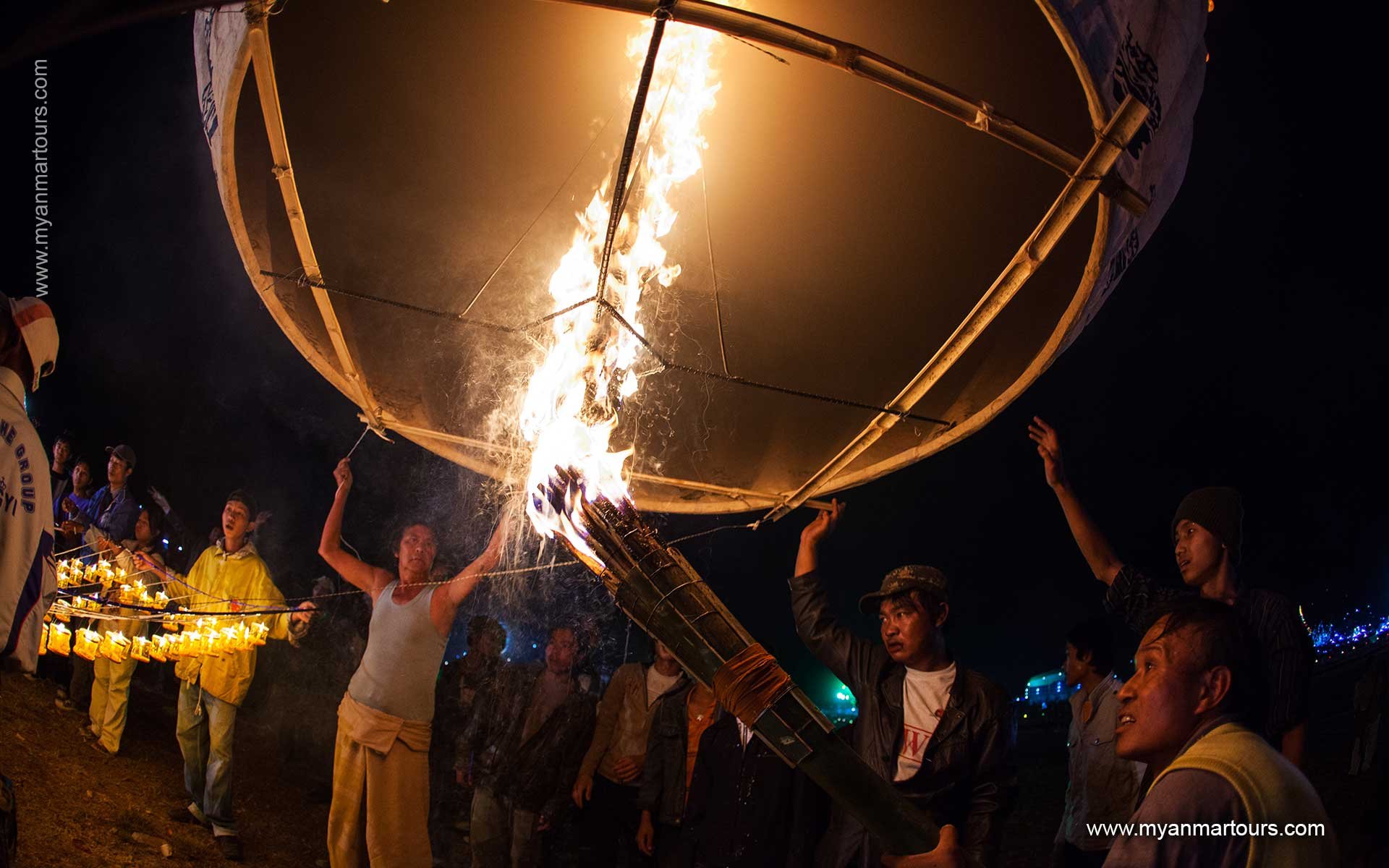 On full moon day of Tazaungmon, the eighth month of the Burmese calendar, the hot air balloon festival attracts people from all over Myanmar and foreign tourists to Taunggyi, Shan's mountainous province. This event also means to mark the end of the rainy season in November. Although some similar festivals are also taking place in other provinces, Taunggyi is the first name appeared in mind when people think of the light festival due to its large scale. It is a reason why people also name it as " Taunggyi Festival ".